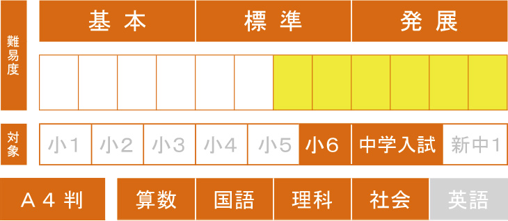 「文系社会」は社会、「理系」は算数・理科の標準~難しいレベルの問題で構成しています。