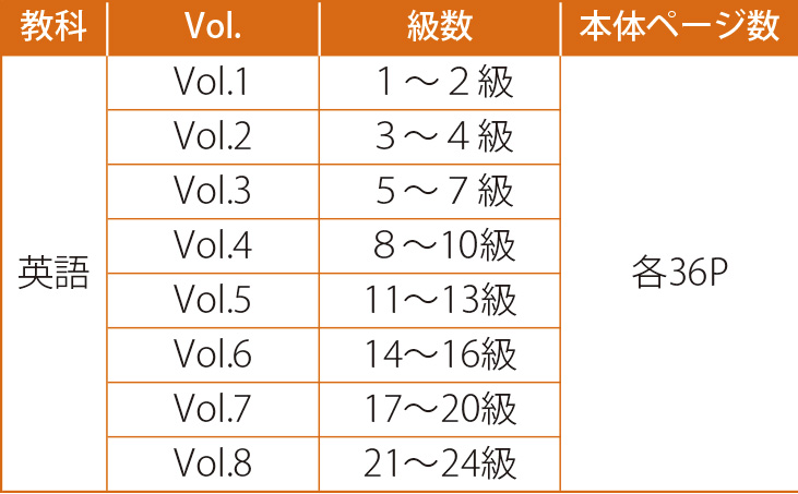 • あい・キャン英語(1級~24級)に対応した、ハギトリ式のノート教材です。オモテ面であい・キャン英語で学習した単語や文章を復習し、ウラ面は単語テストと学習した基本英文の英作文を行います。
