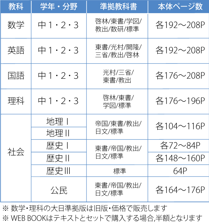 (WEB新ワーク(全教科全準拠),映像新ワーク(英・国:全準拠,数・理・社:標準版),WEBプリント(全教科全準拠),TestMaker(英語・漢字))
