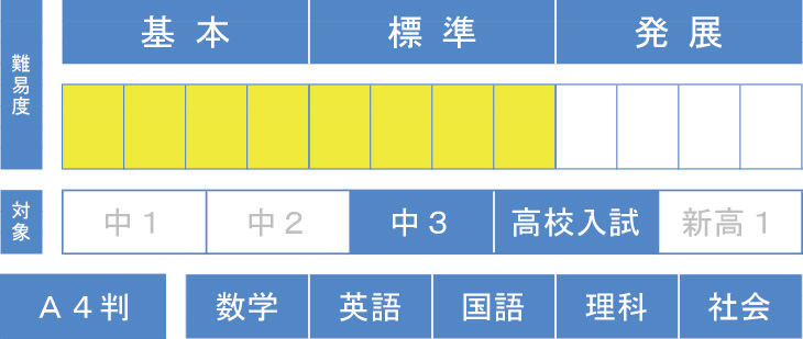 例年頻出の問題や、比較的解きやすく得点源として完璧にしたい問題の演習がしっかりできる教材を各教科で取り揃えました。それぞれの生徒が目指す合格点に届く力が着実に養えます。