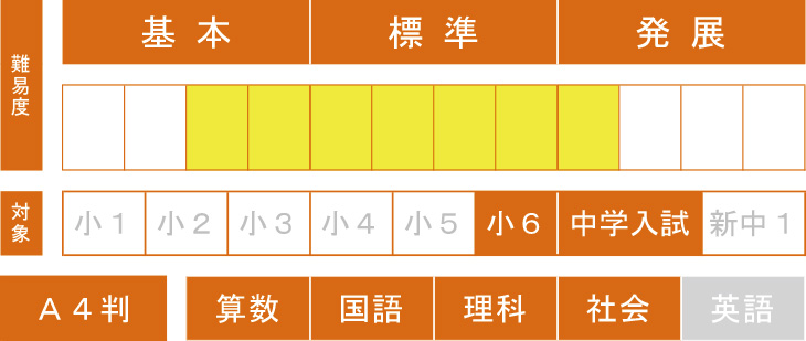 • 最新の公立中高一貫校の適性検査を分析し、近年の出題傾向に合った頻出テーマを各教科20単元ずつ設定しました。定番から近年出題されるようになったものまで幅広く扱っています。