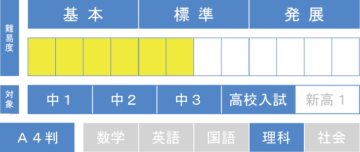 3年で初めて本格的に理科の学習をする生徒も抵抗なく取り組める、書きこみ式のワークです。重要かつ入試頻出の事項のみを扱い、効率よく復習できます。解説授業でのプリントの代わりとしての使用や、入試対策の復習教材としての使用もおすすめです。