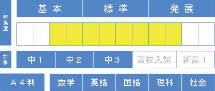 学習内容の積み上げを重視、新学期の先取り学習を含めた構成です。公立標準レベルから発展レベルまでこの1冊で幅広く対応します。