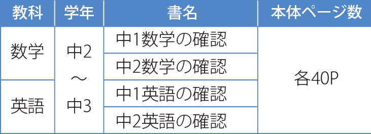 知識の積み上げが必要な英語・数学で苦手箇所が見つかった際に、ピンポイントで復習ができます。通年教材や講習教材との併用も効果的です。