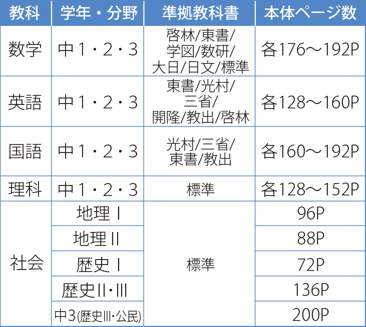 定期テストの対策ページを2段階で設定、テストで問われやすい重要事項や苦手になりやすい問題を中心に構成しています。