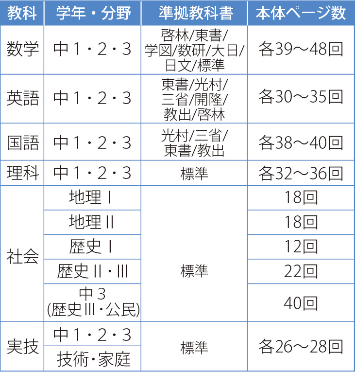※数学・理科・社会は、方眼ノートを掲載。途中式の計算やまちがい直しに利用できます。