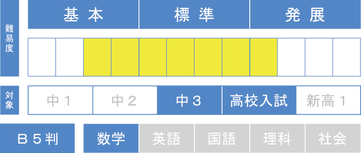基本〜標準レベルの問題で、不得意単元の克服や数学の知識を体系別に整理するのに役立ちます。基本と応用の2段階構成で、各講座の最後に「チャレンジ問題」として発展的内容にも挑戦できます。