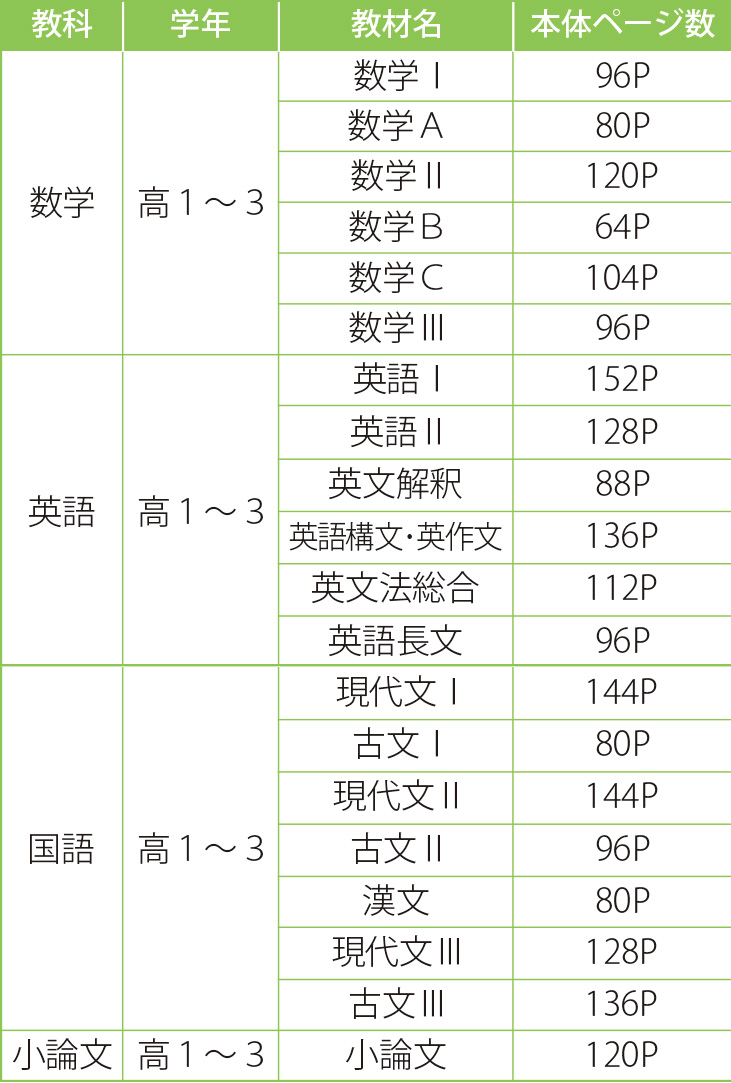 ※確認テストつき(HPよりダウンロード、数学(数学Ⅲを除く)のみ)