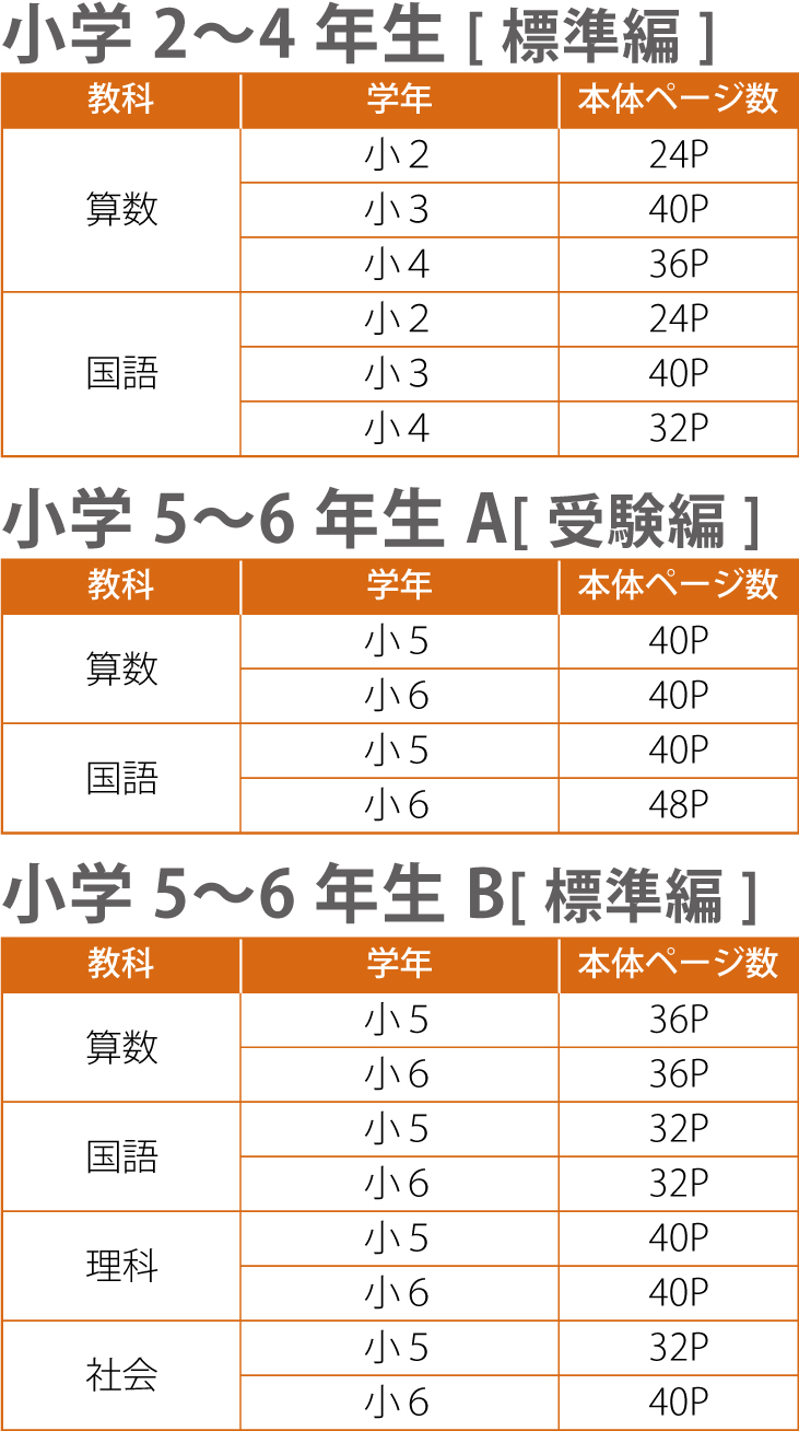 ※小学2~4年生:確認テスト、FINISHING TEST(算数のみ)つき