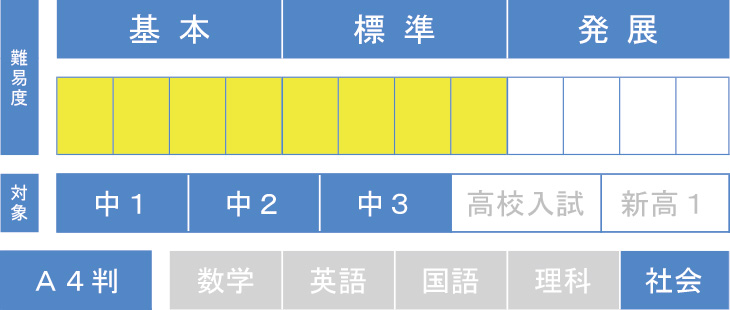 各種資料や入試問題は、近年のものを取り入れて作成、増加傾向にある記述式問題にも対応。定期テスト対策はもとより、入試への土台固めにも十分役立ちます。