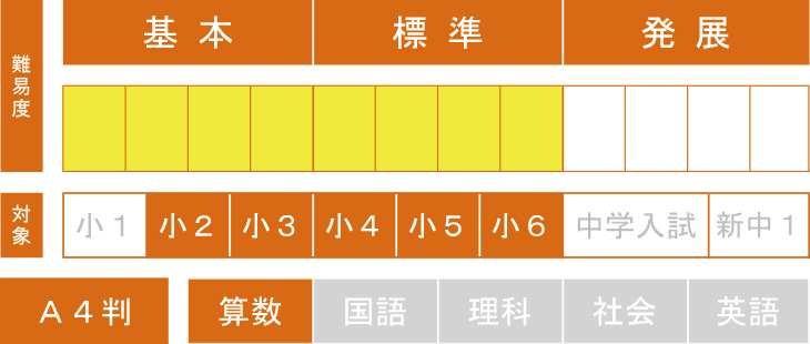 分数の概念をいくつもの段階に分けて説明するスモールステップ方式を採用しています。自学自習ができるため、家庭学習用教材としてもご使用になれます。