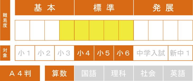 小学校で学習する計算内容を徹底的にトレーニングできるテキストです。前学年までの内容を含んだ累積的内容で構成。復習+新出内容のトレーニングで、生徒のやる気と達成感をキープしながら高い計算能力を養成します。