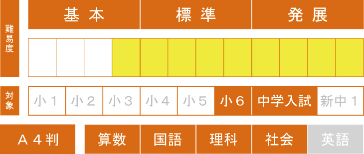 中学受験を目指す生徒の家庭での自学自習をサポートすべく「中学入試に必須の内容で構成」「1日の学習量を定量化」という2つの方針に基づき制作しました。上位レベルの生徒が手ごたえを得られる良問も精選して掲載しており、どのレベルの生徒にも対応できます。