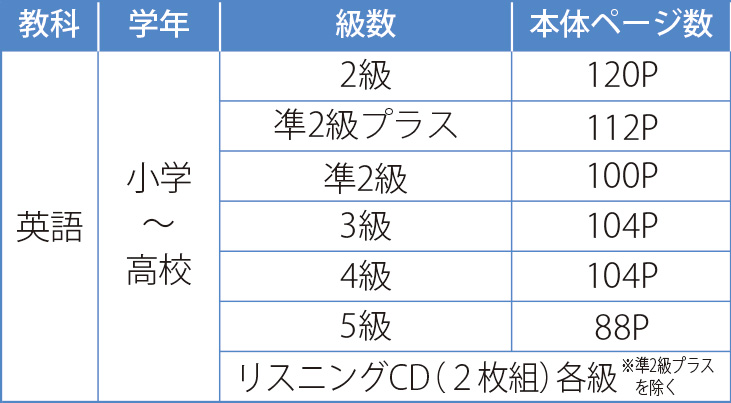 ※生徒用英語音声つき(同じ内容の音声CD (別売)もあります(準2級プラスを除く))