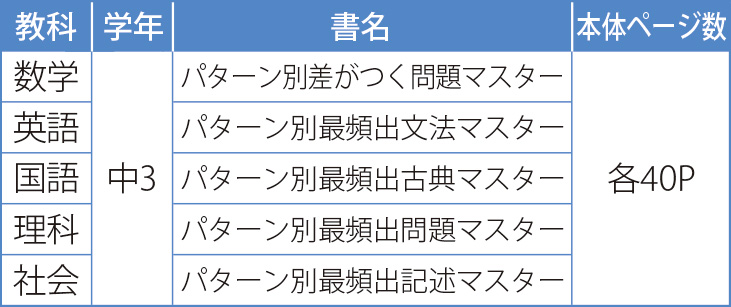 入試最頻出かつ得点力アップに直結する問題を厳選しているため、簡単な復習・確認を実戦的に行いたい受験生にも有効です。無理のない40P構成により、短期間での演習が可能なので、入試対策のラストスパートに最適です。